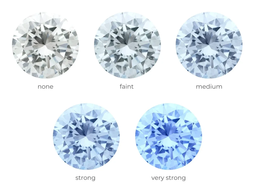 Choose diamonds with “None” or “Faint” fluorescence for optimal appearance. Avoid diamonds with medium, strong, or very strong fluorescence as they may give a hazy or oily look. As most of the lab grown diamonds exhibit none fluorescence, you so you will have plenty of options to choose from.